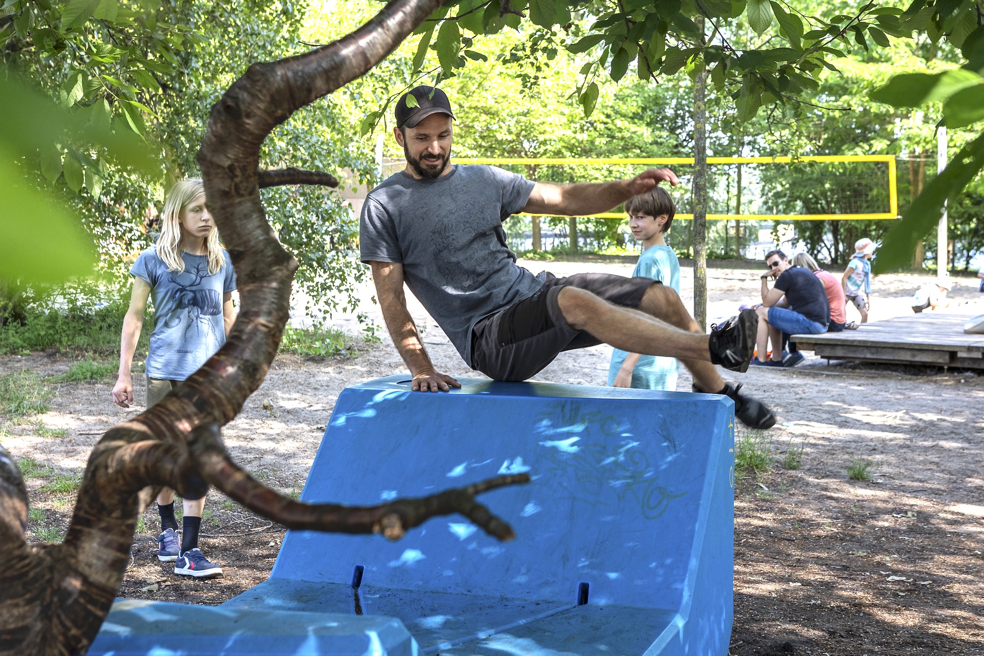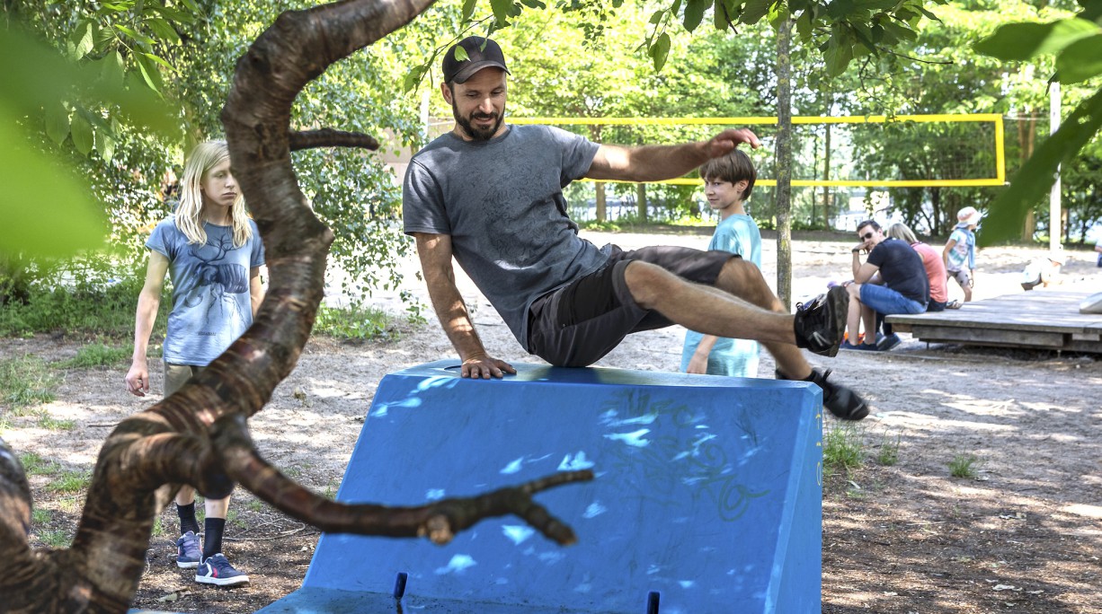 Kinder und Erwachsene, die sich gern in der Natur aufhalten, sind eingeladen, sich im Wald zu begegnen und seine Umgebung spielerisch zu erkunden. Lukas vermittelt dabei grundlegende Techniken, um sicher und kreativ Herausforderungen zu gestalten und gemeinsam Spiele zu entwickeln. Im Mittelpunkt steht die Freude an der körperlichen Erfahrung und das Zusammenspiel in der Gruppe. Anschließend können die Familien sich individuellen Aufgaben stellen, die es einzeln und gemeinsam zu lösen gilt. Lukas Schapp ist Mitinhaber der Potsdam in Bewegung-Akademie. Im Fokus seiner Arbeit steht die Vermittlung von ADD – Art du Déplacement, der Kunst der Fortbewegung, und anderen alternativen Bewegungskonzepten. Er bietet Kurse und Workshops in verschiedenen Disziplinen an. Dazu zählen ADD, Slackline oder Bewegung Naturelle für unterschiedliche Altersgruppen.